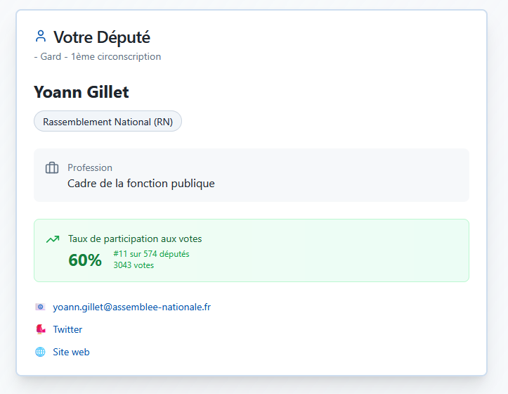 Je me suis alors dit : « Et si je créais un outil qui, en quelques clics, permette de savoir qui est ton député, quel parti il représente, et quelle influence il subit ? » Un côté détective, un côté développeur, et beaucoup d’envie de transparence.